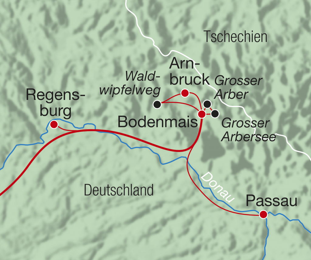 Der Bayerische Wald ist eine der grössten zusammenhängenden Waldlandschaften Deutschlands. Aber er hat nicht nur dunkle Wälder und rauschende Bäche zu bieten. Diese Reise zeigt Ihnen auch die Welt rund um die Kunst des Glasblasens, entführt Sie in die wunderschönen Städte Passau und Regensburg und bringt Sie zum «König des Bayerischen Waldes», dem Grossen Arber.