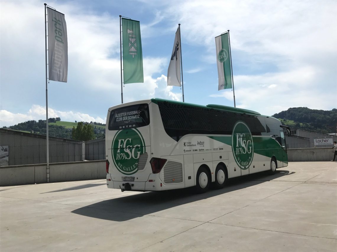 Planen Sie Ihren Firmenausflug, ein geschäftliches oder privates Jubiläum/Fest oder einen Vereinsausflug mit dem Mannschaftsbus der 1. Mannschaft des 1. FC St. Gallen.