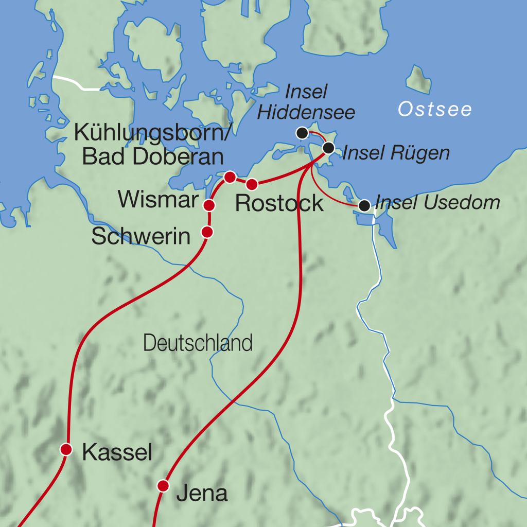 Freuen Sie sich auf diese Standortreise zu den Schätzen entlang der Ostsee. Tauchen Sie mit uns in die malerische Schönheit von Rügen. Geniessen Sie auf der Sonneninsel Usedom die endlose Weite und lassen Sie sich auf der Insel Hiddensee, die auch als «Perle der Ostsee» bezeichnet wird, die frische Seeluft um die Nase wehen. Sie ist Teil eines Nationalparks und Heimat verschiedener Pflanzen- und Tierarten. Ausserdem warten die Städte Schwerin und Rostock darauf, von Ihnen erobert zu werden. Freuen Sie sich auf die einzigartige Atmosphäre der Region und ihrer Inseln.