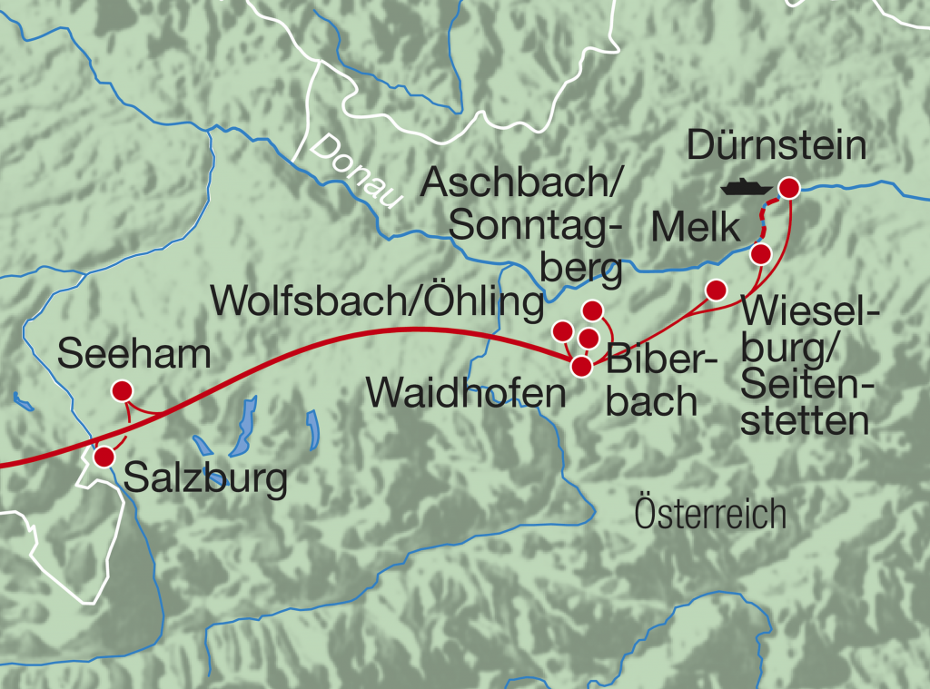 8. Tag, Waidhofen – Rückkehr: Nach dem Frühstück folgt die Heimreise in die Schweiz zu den Einsteigeorten mit einem Mittagshalt unterwegs.