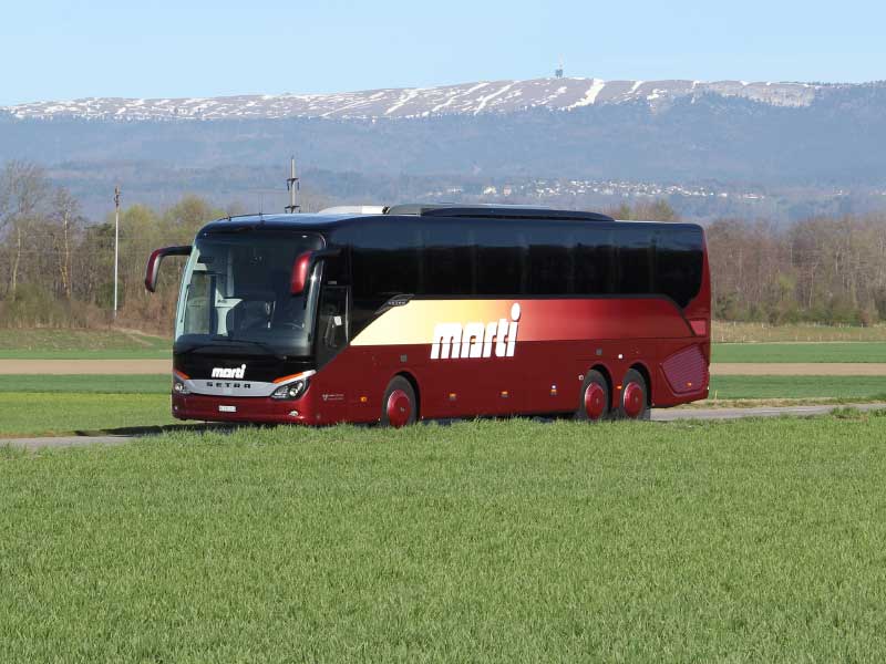 Marti Reisecars entsprechen den modernsten Standards bezüglich Komfort, Umweltverträglichkeit und Sicherheit. Die Fahrzeuge werden regelmässig erneuert und zählen zu den aller jüngsten der Branche. Ein umfassender Wartungsvertrag mit dem Hersteller garantiert Unterhalt durch qualifizierte, vom Hersteller geschulte Spezialisten und somit höchste Zuverlässigkeit.