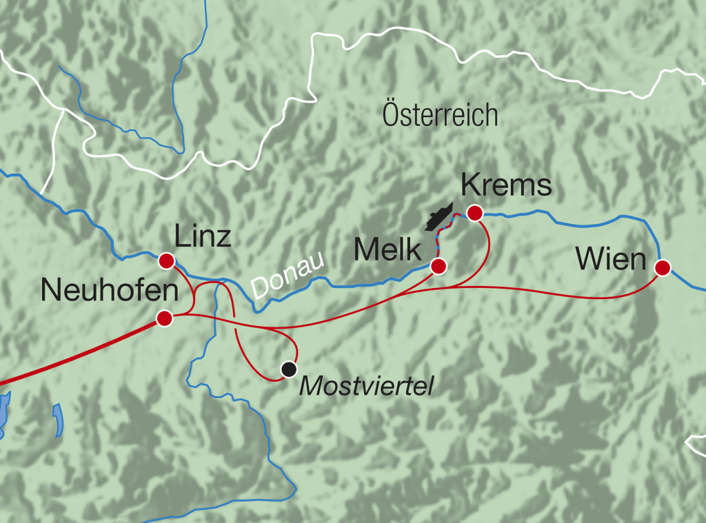 Erleben Sie das Herz Österreichs zwischen sanften Hügeln, glitzernden Flüssen und barocken Prachtbauten. Die Wachau verzaubert mit ihren Rebhängen und Stiften, Wien begeistert mit imperialem Glanz und moderner Lebendigkeit, das Mostviertel mit ländlicher Idylle und regionalem Genuss. In Linz erleben Sie die charmante Donaustadt von ihrer schönsten Seite – eine Reise voller Kultur, Natur und Lebensfreude.